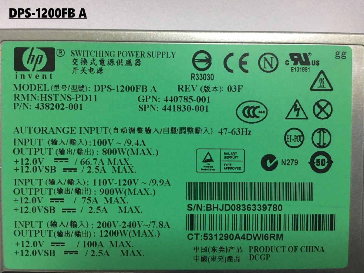 HP Server Power Supply For DL580G5 G6 G7 DPS-1200FB A 438202-001 1200W