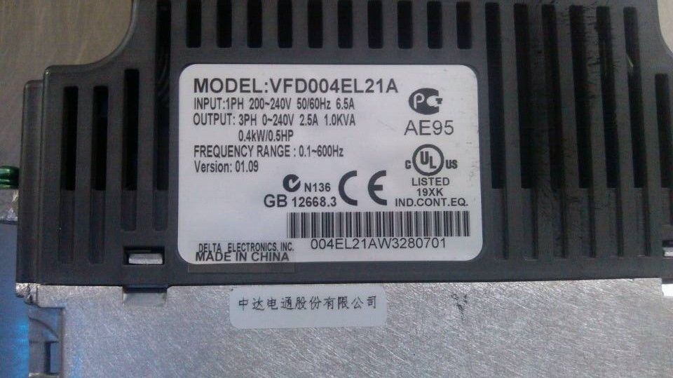 VFD004EL21A DELTAVFD-EL VFD Inverter Frequency converter 400w 0.5HP 1PHASE 220V for Small waterpump and fan new in box